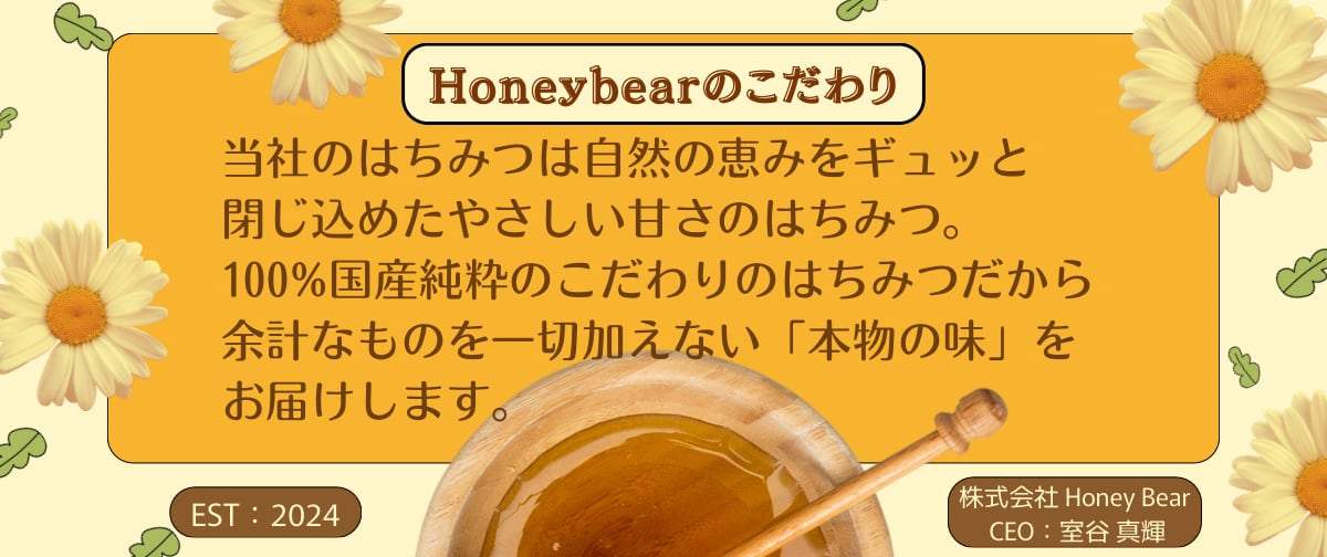 【100%国産純粋はちみつ(三重県産)】 当社人気No. 1の"熊の生はちみつ"と使いやすくてオススメ"くまのはちみつ"の食べ比べができるセット商品。 さっぱりした甘さで、柑橘系の香りが特徴なみかん蜜とまろやかな甘さでコクを感じられる百花蜜。 はちみつの中でもお花によって味や香りが全然違うので、ぜひお料理や一緒に食べるものに合わせて使い分けるのもオススメです。 お客様の声から作られた贅沢セット商品! オンラインショップ限定販売です。 【こちらの商品は1つずつ入り】 ■素材/原産地 - 130g.300g / 国産(三重県) - 使用している蜜は100%三重県の無添加、非加熱で安心・安全な商品になっています。 ■お手入れ/取り扱い注意事項 - 開封後は直射日光を避け、涼しい場所に保管してください。時間が経つと結晶化することがありますが、品質には問題ありません。 ■発送・注文に関する情報 - 通常、注文から2〜3日以内に発送いたします。大量注文または特別なご要望がある場合は、事前にご相談ください。 ■その他の情報や注意事項 - アレルギーをお持ちの方は、成分をよくご確認の上、お申し込みください。 1歳未満の乳児には与えないでください。 お買い物に関するご質問やご相談は、ショップのお問い合わせからお気軽にどうぞ。お客様の素敵な食卓をサポートできることを心より楽しみにしています。